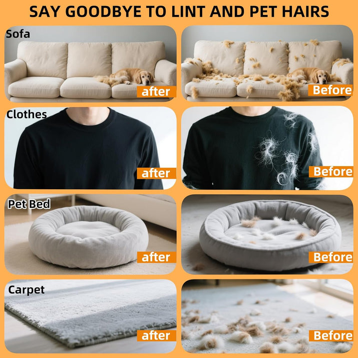 Answer 3: Absolutely! These gloves are versatile and can effectively clean a variety of surfaces, including clothing, couches, carpets, car seats, and curtains, making them a comprehensive solution for all pet hair cleaning needs.